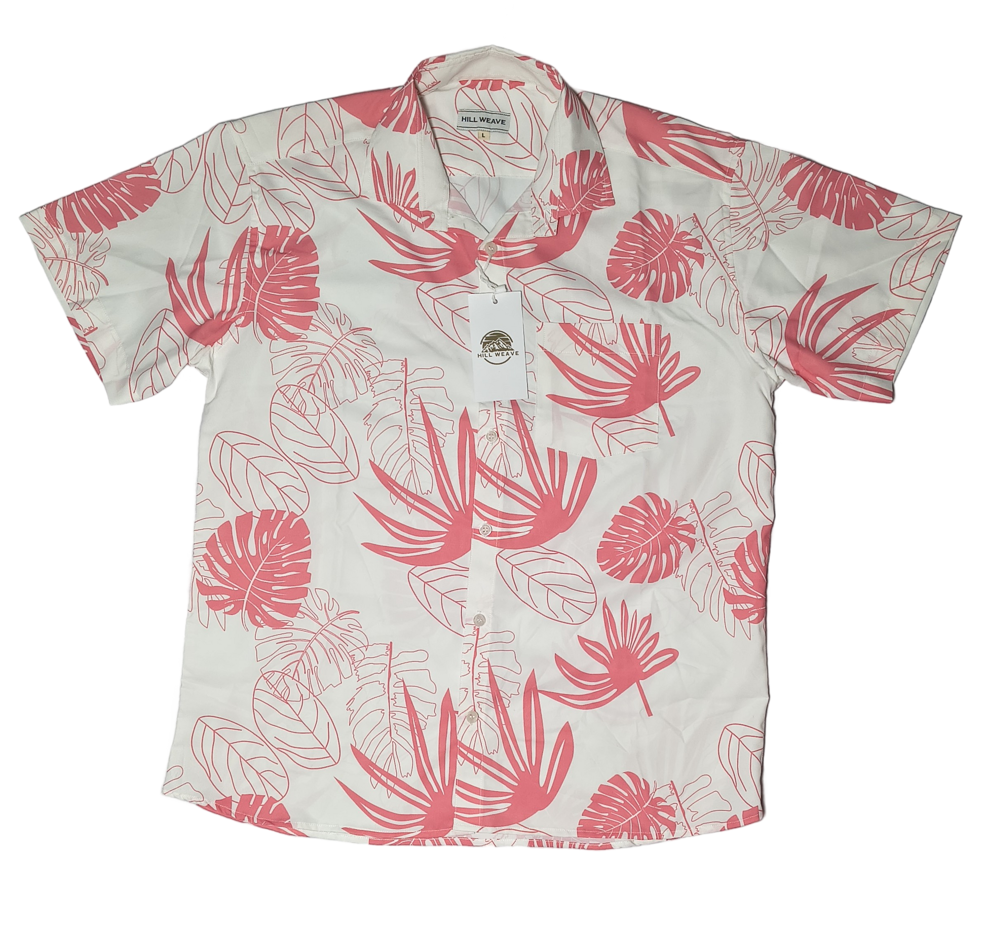 Pink Leaf Print Mens Casual Shirt